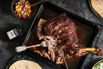 - Once your meat has rested, keep it in its tray and use two forks to shred the meat up, mixing it up with the meat juices as you go.