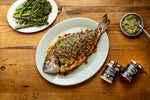 - Once the fish is ready, serve with a spoonful of the butter spread over the crispy skin.